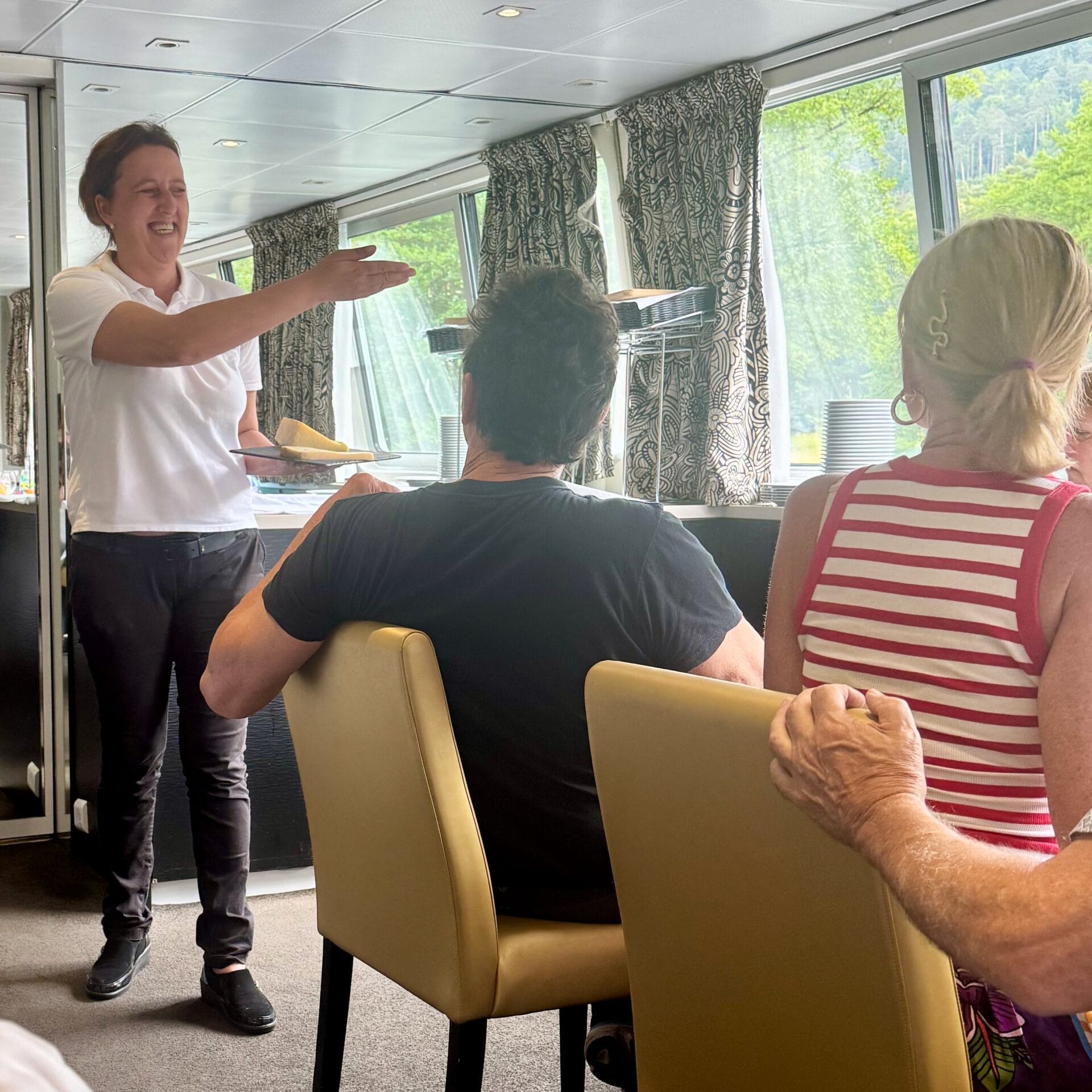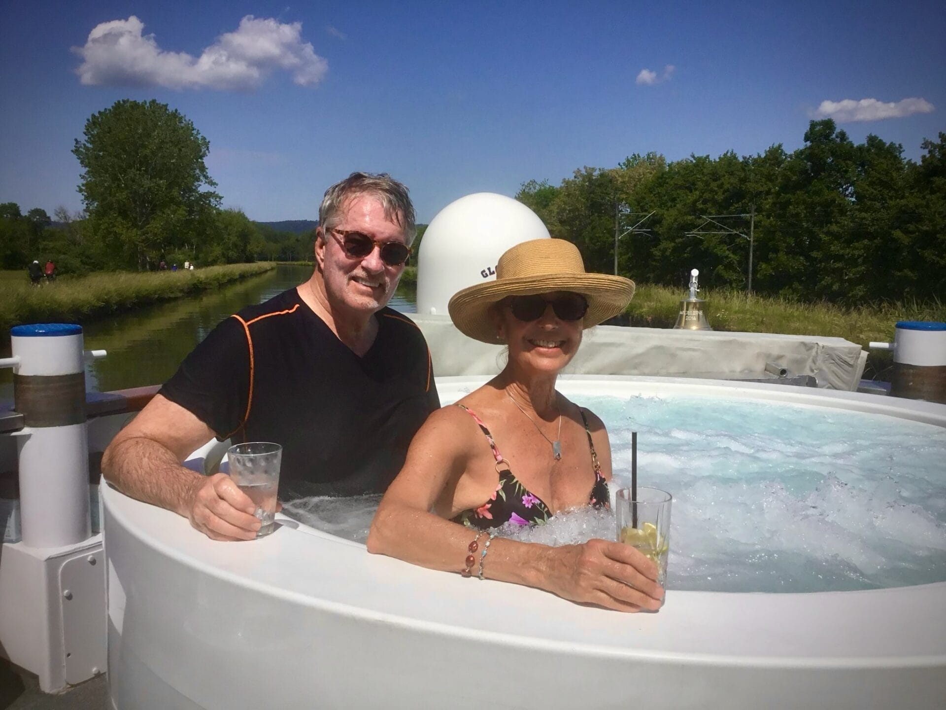 We boarded our barge in Strasbourg, where our small group (never more than 22) settled into cozy cabins—compact, yes, but more than enough for a week. The real magic happens outside your room anyway: in the lounge, at the dining table, out on deck or in the Jacuzzi with a glass of Crémant d’Alsace.